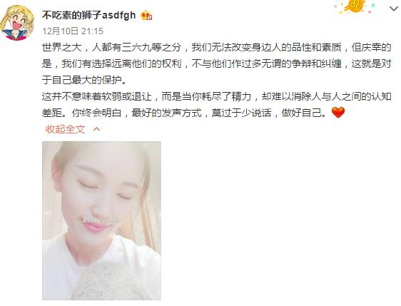 她的微博小號也隨之曝光,內容依舊是吃吃玩玩,十分愜意,看上去絲毫不受離婚事件影響。馬蓉還在一條發文中稱:“世界之大,人都有三六九等之分,我們無法改變身邊人的品性和素質,但慶幸的是,我們有選擇遠離他們的權利,不與他們作過多無謂的爭辯和糾纏,這就是對於自己最大的保護。這並不意味著軟弱或退讓,而是當你耗盡了精力,卻難以消除人與人之間的認知差距。你終會明白,最好的發聲方式,莫過於少說話,做好自己。”