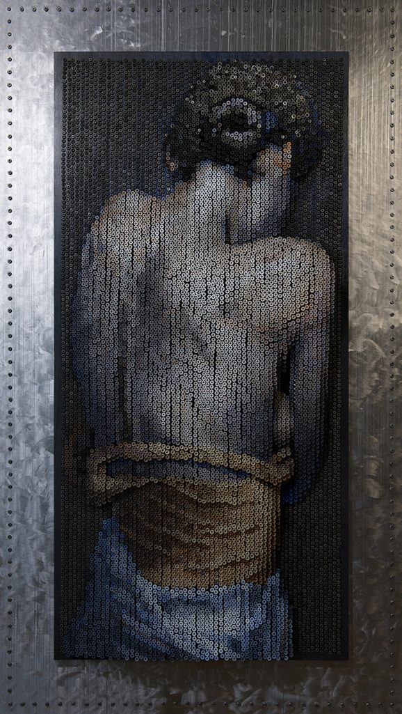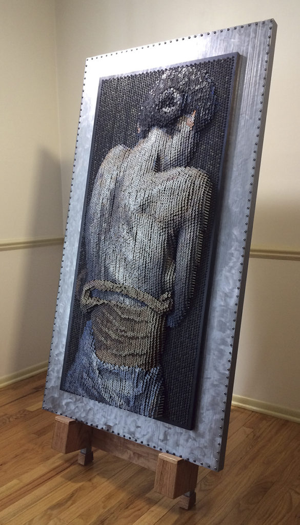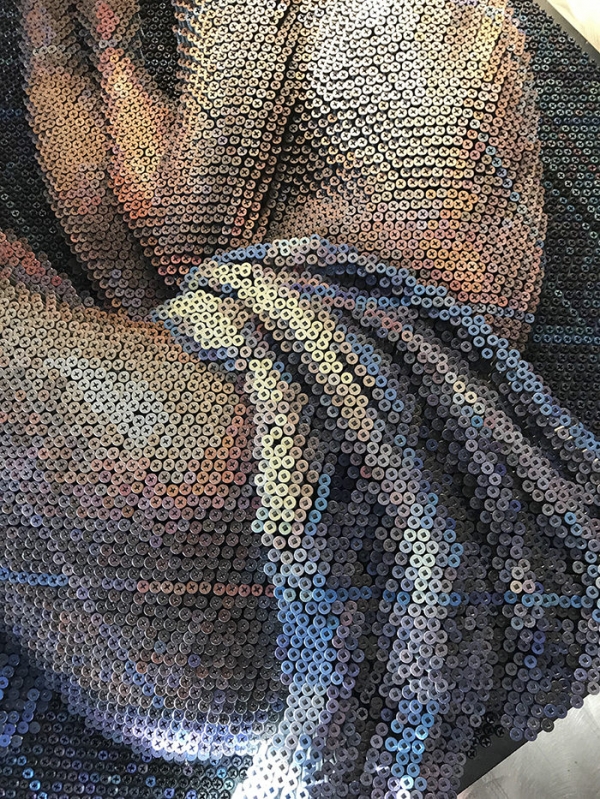 3. 為了做出一幅畫,他花了好幾百個小時一一檢視這些螺絲,並且慢慢做調整,才有這種3D的視覺感。